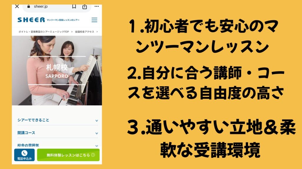 シアーミュージック札幌校のおすすめ3つのポイント